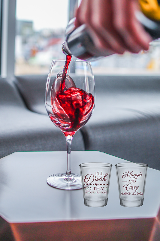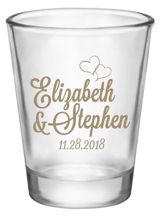 Names with Hearts Wedding, Engagement, Anniversary Shot Glasses