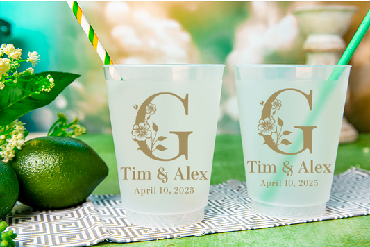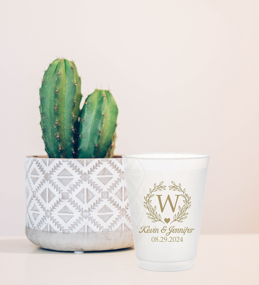 Wreath Monogram Design Wedding Frosted Flex Cups