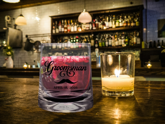 10oz Modern Style Old Fashioned Glasses with a Personalized "Groomsman" Design