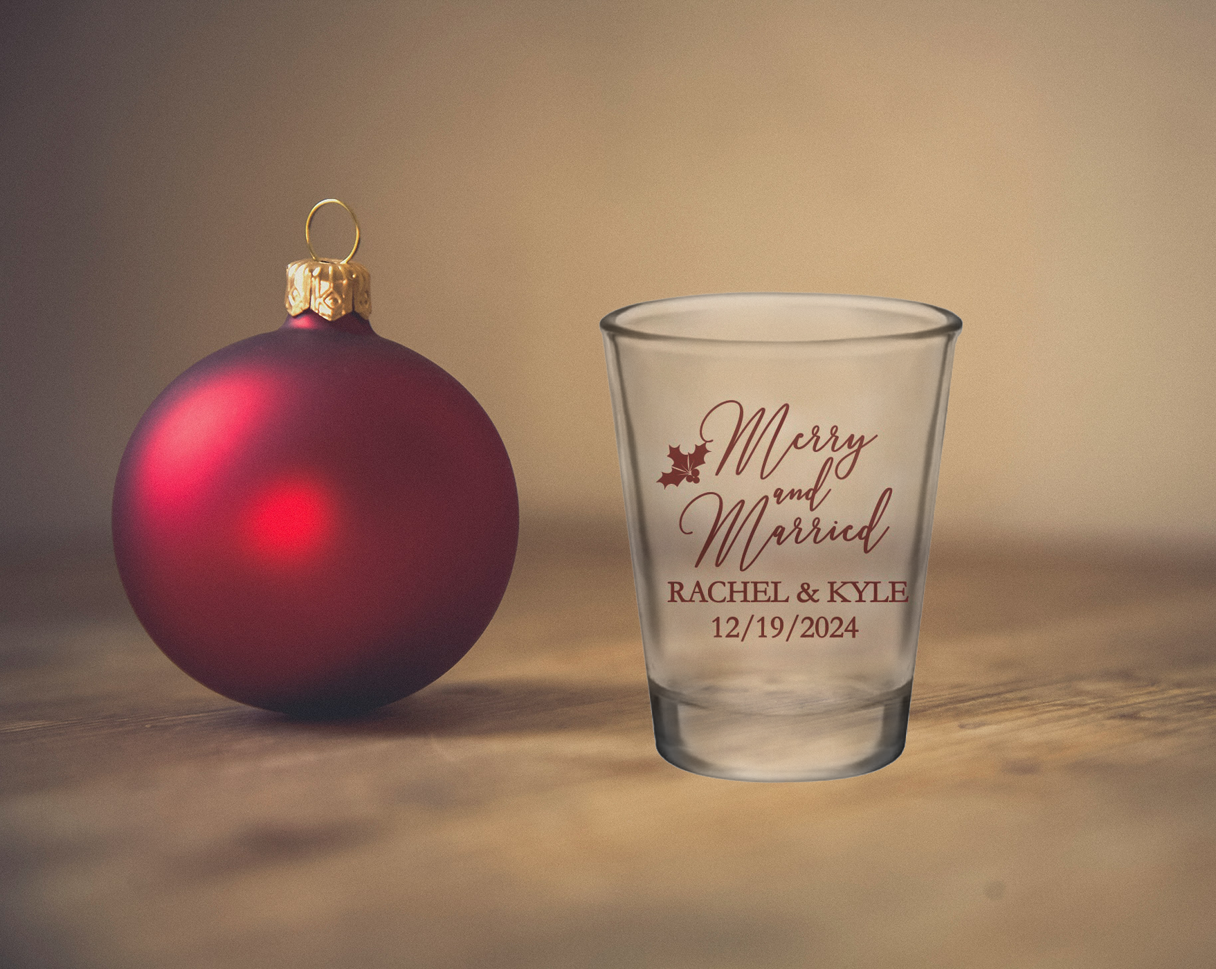 Producto: Vasos de chupito de VIDRIO de 1,75 oz. Personalizados solo para ti, con tus nombres y la fecha de tu boda.