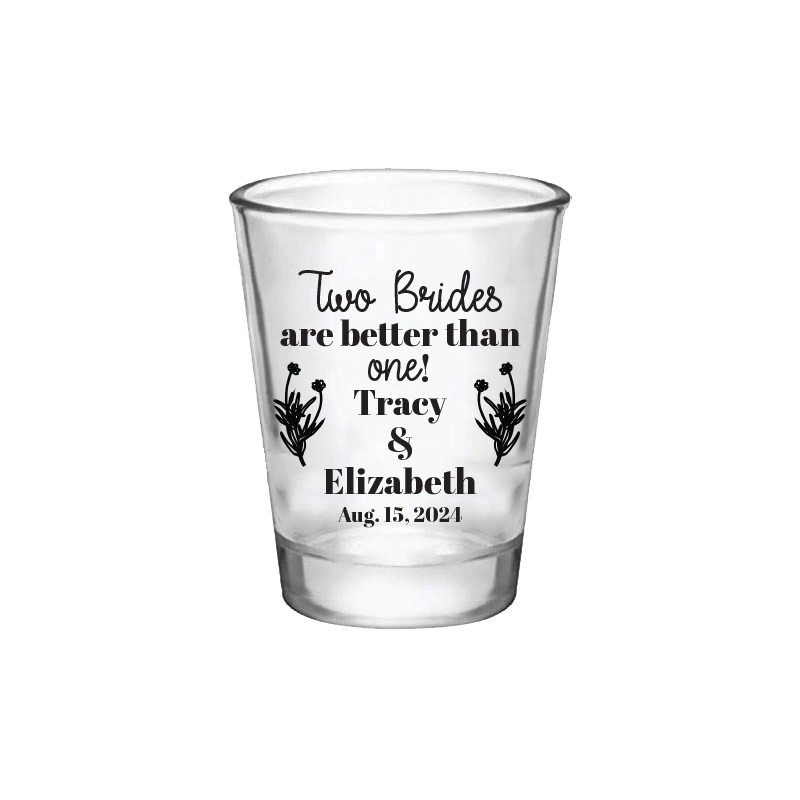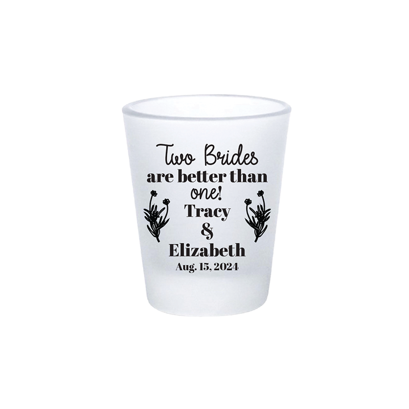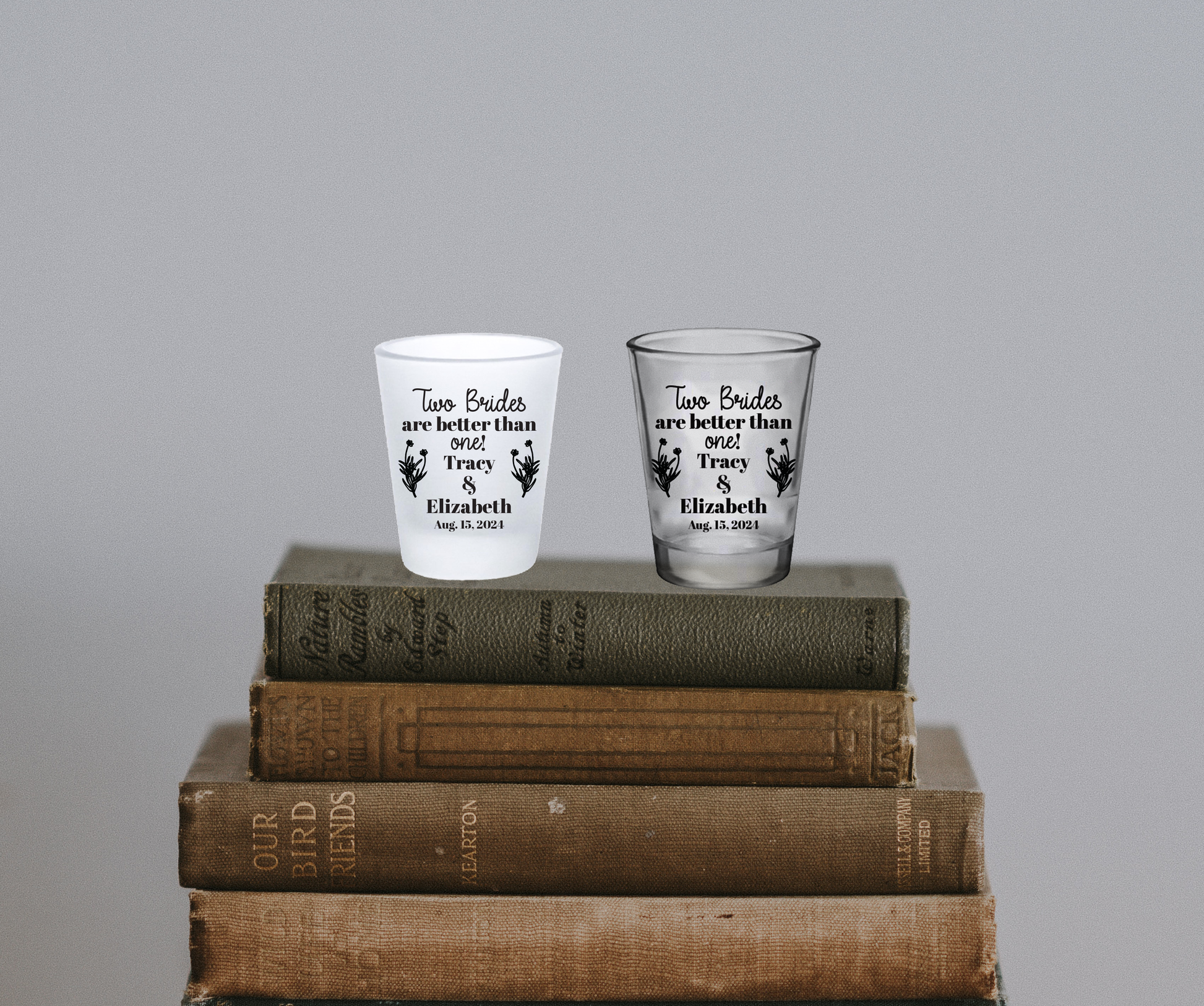 Dos novias son mejores que una, vasos de chupito de boda personalizados LGBTQI+