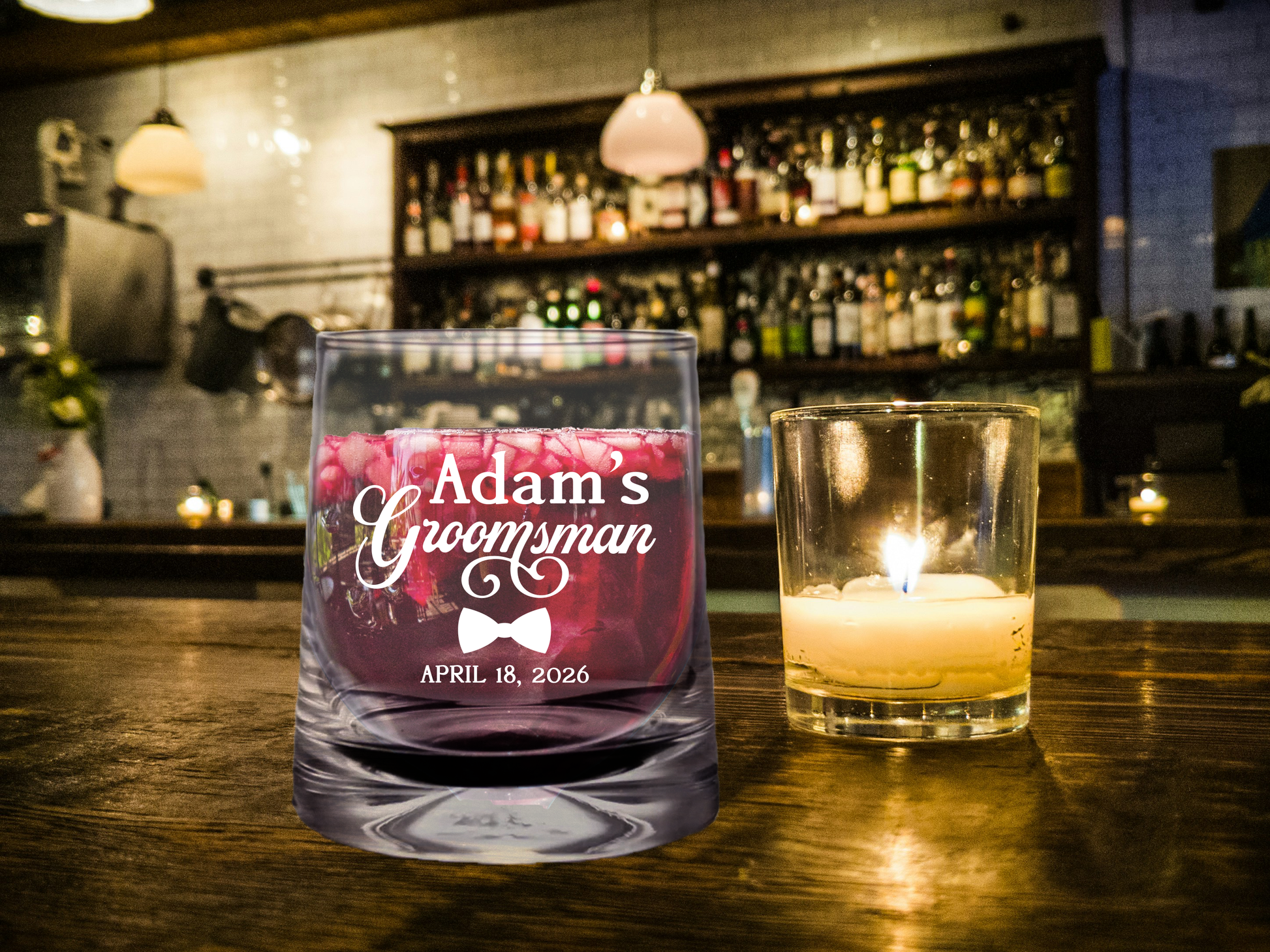 10oz Modern Style Old Fashioned Glasses with a Personalized "Groomsman" Design