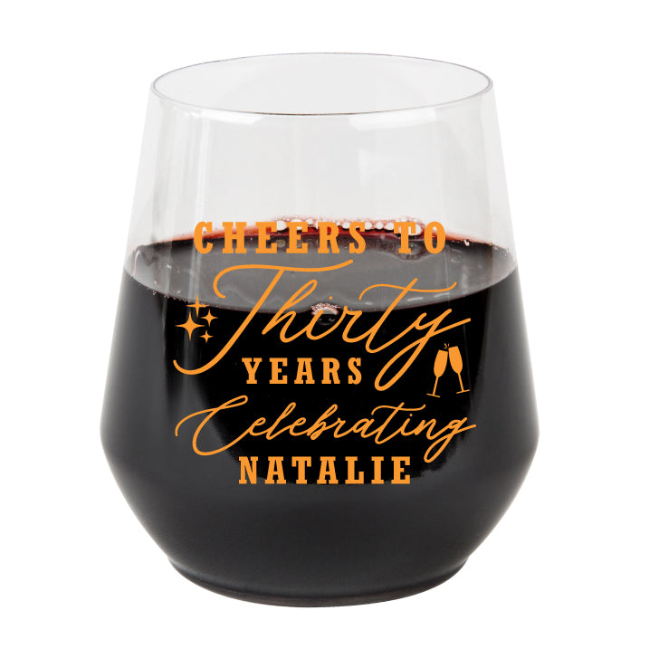 30th birthday plastic wine glasses - Cheers to Thirty Years