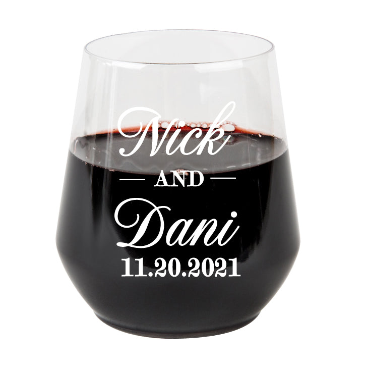 Plastic wine glasses- names & date
