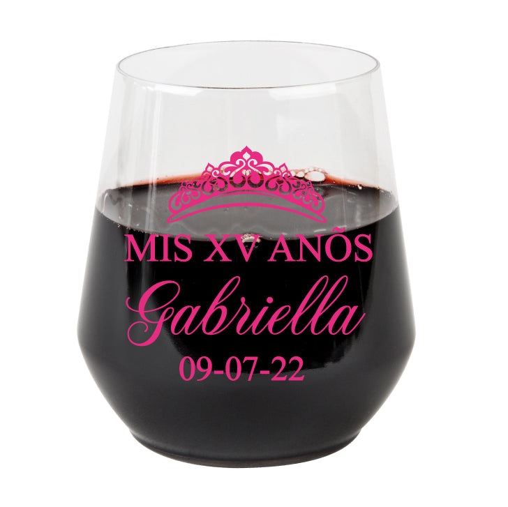 Product: 12 oz. Plastic Stemless Wine Glasses with a one color personalized design of your choice!